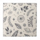 Elegant celestial botanical pattern ceramic tile featuring moons, stars, planets, mystical eyes, and delicate leafy branches in a minimal black and cream style. Ideal for astrology lovers, spiritual seekers, nature enthusiasts, and anyone who loves boho celestial aesthetics.
