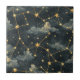 Mystical constellation pattern ceramic tile featuring golden stars, celestial lines, and dreamy clouds across a dark night sky background. Ideal for astrology lovers, stargazers, astronomy fans, spiritual seekers, and anyone who loves cosmic and celestial style.
