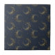 An elegant celestial pattern ceramic tile featuring golden crescent moons, and scattered stars set against a deep blue background. Inspired by vintage astrology and mystical night skies, this seamless design blends luxury gold textures with cosmic symbolism.
