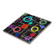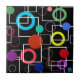 Design de style rétro avec cercles colorés et carrés blancs sur arrière - plan noir