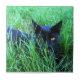 Le chat noir dans l'herbe verte… doit attendre une souris pour venir par.