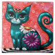 Chat de chaton Whimsical assis sur le tapis Floral Turquoise
