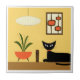 Carreau Chat du milieu du siècle avec pots mods sur jaune