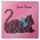 Ce charmant carrelage en céramique présente une gracieuse silhouette de chat de style dentelle noire, portant un arc turquoise aux faux appliqués, dressé contre un arrière - plan doux à dégradé rose. Personnalisez-le avec votre nom ! Un accent parfait pour une salle de bain pour filles, un coin salon de coiffure, ou même un garde-manger décoratif pour les amoureux de les chats. Feminine, joueuse et totalement unique.