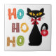 Carreau Chat noir avec design de texte Ho Ho Ho