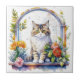 Carreau Chat Whimsical sucré en fenêtre de fleurs