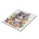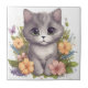 Carreau Chaton gris doux avec fleurs Kawaii Chibi