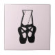 Tuile en céramique avec illustration noire d'une danseuse de ballet chaussons et ses jambes. Ballerina se tient sur ses orteils, en pointe.
