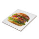 SlipperyJoe's bouche empilé hamburger épais boeuf pâté fromage fondu nourriture légèrement grillé sésame pain de semence croustillante laitue juteuse tranches de tomate rouge anneaux d'oignon LGBTQIA vibrants pops de couleur artistique gay pride cadeaux incroyablement appétissants équilibre des textures