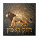 Image d'un lion superposée sur un arrière - plan fractal avec le texte hébreu "Chazak ve'ematz" (ח ז ק א ץ) signifiant Soyez forts et courageux !, l'avertissement de Josué au peuple sur le point de se lancer dans la conquête de la Terre d'Israël. (Josué 1:6) Que ces paroles de la Torah ne s'éloignent pas de vous, chazak, soyez forts et courageux, alors que vous affrontez les problèmes et les dangers dans ce monde. Il est également d'usage pour les congrégations juives de se tenir comme les derniers mots d'un livre de Torah sont lus de manière dramatique. Le lecteur signale à la congrégation, qui répond ensuite par "Chazak, chazak, v'nitchazeik" (Fort, fort, et soyons renforcés).