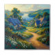 Golden Path to Blue Water est un paysage lumineux de campagne créé en hommage aux environnements radieux et idéalisés associés à Maxfield Parrish. Un chemin sinueux ensoleillé attire le spectateur à travers des jardins en fleurs et des cottages sculptés vers une étendue sereine d'eau bleu cobalt, encadrée de collines ondoyantes et de cieux lumineux. La couleur saturée, la lumière théâtrale et la composition soigneusement équilibrée créent une scène qui semble intemporelle et doucement irréelle, évoquant un sentiment de calme, de beauté et de tranquillité mythique sans imiter directement l'œuvre de Parrish.