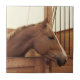 Photo d'un cheval de châtaignier avec un brasier, debout dans un étal.