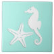Carreau Cheval de mer et étoile de mer - blanc sur aqua pâ