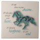 Éclairez votre maison avec ce Carrelage décoratif Inspirationnel "One of a Kind" ! Il dispose d'une Silhouette de Cheval Galloping Unique en Turquoise, Noir & Or. "Je Danserai Dans Vos Rêves" ~ I Will Gallop Through Your Heart" ~ I Will Plante Hoofprints on Your Soul"! Il s'agit d'un graphisme original créé par l'artiste Kerry Miller. Bon appétit !