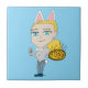 un chat oreilles lapin queue chibi fille servir pizza