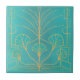 Tuile de fontaine à bec d'eau Art déco avec faux effets métalliques et légers brillants en or et turquoise ou bleu aqua. Parfait pour une trivette ou pour un décor design et rétro de la salle de bain carrelage maison. Conçu par Anne Londez.