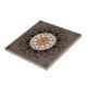 carreau de céramique chic mandala moderne noir blanc simple marron, motif mandala stylé entouré de feuilles, ces feuilles ont des yeux, ces yeux regardent le ciel nocturne autour de lui,