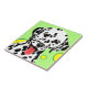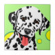 L'art de chien coloré avec dalmate blanc avec taches noires contre un arrière - plan vert clair et cercles jaunes