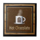 Un rendu numérique d'une tasse de chocolat chaud à la vapeur sur une enseigne murale en bois.