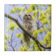 Un jour de printemps brillant, une chouette barrée perchée dans un arbre.