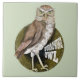 Illustration d'une chouette brulante devant son terrier. Le chouette a de grands yeux jaunes.