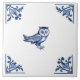 Carreau Chouette décorative aux coins Bleu et Blanc