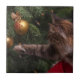 Le design présente une photo d'un chat tendant vers une décoration sur un sapin de Noël.
