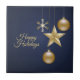 Christmas Party Golden Ornaments Navy Blue Elegant ceramic tile. Unique, beautiful, stylish design. Easy to be personalized. Font style, size and colors can be changed. Matching items are available.