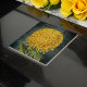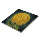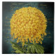 Le collage vintage sur ce carrelage décoratif en céramique présente un beau chrysanthème d'araignée jaune doré contre un arrière - plan damassé turquoise en détresse, semblable au papier peint rétro. L'écriture dorée ajoute un intérêt unique à l'arrière - plan texturé bleu-vert. La fleur apparue sur ce carrelage provient d'une ancienne illustration botanique du domaine public.