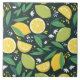 Tuile en céramique avec un motif mignon avec citrons jaunes et citron vert avec des tiges de feuilles posés sur un arrière - plan vert foncé.