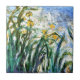 Artiste : Claude Monet Titre : Yellow Irises and Malva Année : 1914-1917 Belles irises jaunes avec de grands feuilles verts contre un ciel bleu calme.
