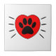 Un empreinte de patte de chien de style caricature mignon et des battements de coeur rouge. Carreaux céramiques personnalisés. Idée cadeau pour les personnes de tous âges qui aiment les chiens.