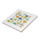 This fun hanging wind chimes Mid Century ceramic tile features abstract shapes and lines in the colors of turquoise blue, avocado green, orange, tan, blue, and black.