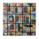 Colorful urban graffiti patchwork pattern ceramic tile featuring bold abstract blocks, expressive brush strokes, scribbles, stars, and mixed-media textures in bright blue, yellow, pink, orange, and black. Energetic and edgy with a modern street art aesthetic, this seamless design is ideal for graffiti art lovers, maximalist style fans, creative teens, and contemporary art enthusiasts.