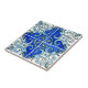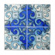 Art par Marta Harvey. Chaque petite tuile bleue dans cette conception a été imprimée avec un bloc découpé par main, peinte avec des aquarelles et décrite avec le stylo et l'encre. Cette conception a été inspirée par les tuiles portugaises, appelées les azulejos.