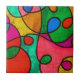 Le carrelage en céramique abstraite multicolore présente un jeu dynamique de couleurs vives, dont le blues, le rouge, le jaune, le vert et le violet. Le design a un motif fluide et tourbillonnant qui rappelle l'art abstrait moderne. Il comprend des gradients, des éclaboussures et un flux organique qui ajoute profondeur et énergie à la composition. La surface semble brillante avec une finition légèrement texturée, mettant l'accent sur la nature vivante et artistique de la pièce.