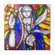 Thème église Style de fenêtre en vitrail aux couleurs vives. Conception de vitrail lumineuse et colorée avec figure religieuse.