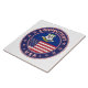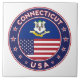 Badge du Connecticut avec drapeau du Connecticut et drapeau des couleurs des Etats-Unis, forme arrondie. Emblème du Connecticut. Sceau du Connecticut. Collection USA Etats.