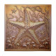This sculptural-effect tile features a richly detailed starfish, set among flowing sea kelp and stylized waves. The textured design is enhanced by a luxurious antique copper finish that offers warm, deep tones and hints of metallic shimmer. Mimicking an aged, embossed metal plaque, this tile is perfect for adding a touch of sophisticated, high-end texture to rustic, industrial, or elevated coastal interiors, particularly as an accent in bathrooms or feature walls. Search ID1223 to see other marine elements in this dramatic metallic series. Note: design may contain generative content.