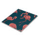 Motif vectoriel avec flamants dessinés à la main en couleur corail vivant sur arrière - plan bleu foncé.