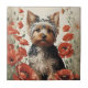 Carreau Corte Yorkshire Terrier Botanique Poppies rouges