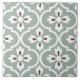 Couleur claire moderne dans le classique motif méditerranéen espagnol, carrelage en céramique. Arrière - plan vert sauge très clair, floral blanc avec des gouttes d'eau marron.