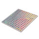 L'image colorée et abstraite de ce carrelage en céramique de 6" a été créée à partir d'une photo originale de ZoeSPEAK d'un transat. La grille est composée de bandes diagonales de couleurs pastel, bleu gris doux, rose et jaune. A travers les trous de la grille, on trouve des nuances plus sombres de teintes similaires, avec des bouts de rouge vif, de bleu et d'aqua qui surgissent ici et là.