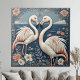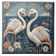 Carreau Couple de flamants romantiques Art déco Étang bleu