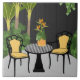 J'ai créé ce dessin numérique inspiré d'un petit café de ville, entouré d'une cour tropicale luxuriante, avec des feuilles de monastère, des palmiers et un centre de table de fleurs d'oiseau de paradis.