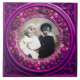 Modèle photo élégant, classique, beaux-arts de la Renaissance, chef-d'œuvre de Bottega della Robbia (Florence - Italie). Assiette en porcelaine ronde/ circulaire classe en or jaune, noir, violet, rose, fuchsia, violet.