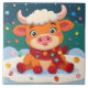 This cute highland calf was trying to help decorate for Christmas but got mesmerized by Christmas lights. This is a stylized, cartoon like baby cow/calf in a red scarf, surrounded by dots of color against a teal and green background. It would be a cute holiday decoration for a family with young kids or who enjoy whimsical farmhouse charm.