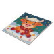 Carreau Cute Baby Highland Cow w Christmas Lights on Teal