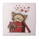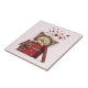Ceramic tile with a cute drawing of a little kitten poking its head out of a gift box.