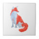 Illustration ludique dessinée à la main d'un mignon petit renard sur un carrelage décoratif. Oeuvre : Pastel à l'huile sur papier. Copyright Dominic A. White. Tous droits réservés.